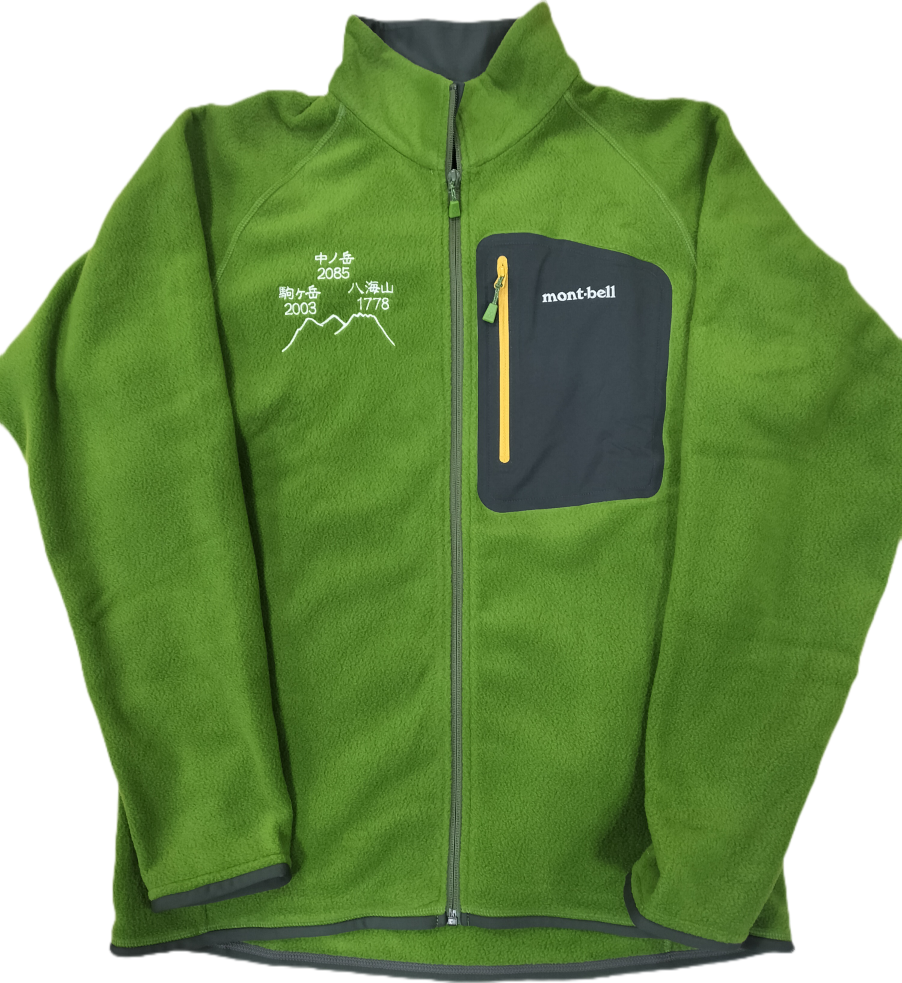 魚沼市から見える越後三山のオリジナル刺繍が入ったモンベル製のフリース。
