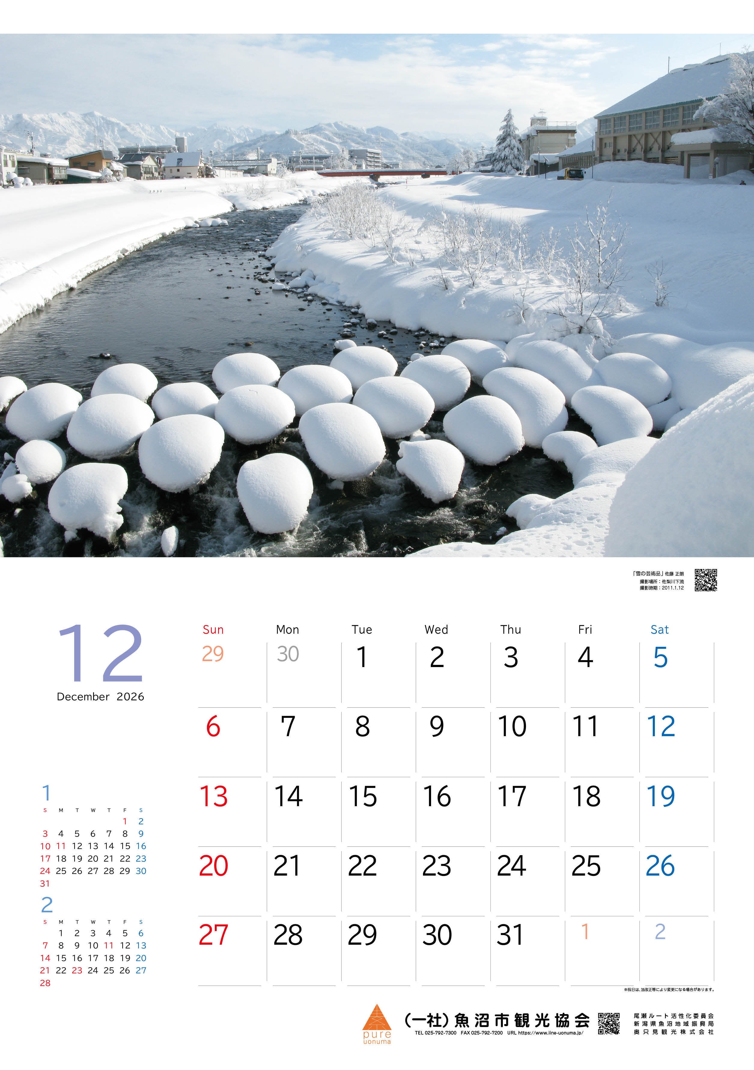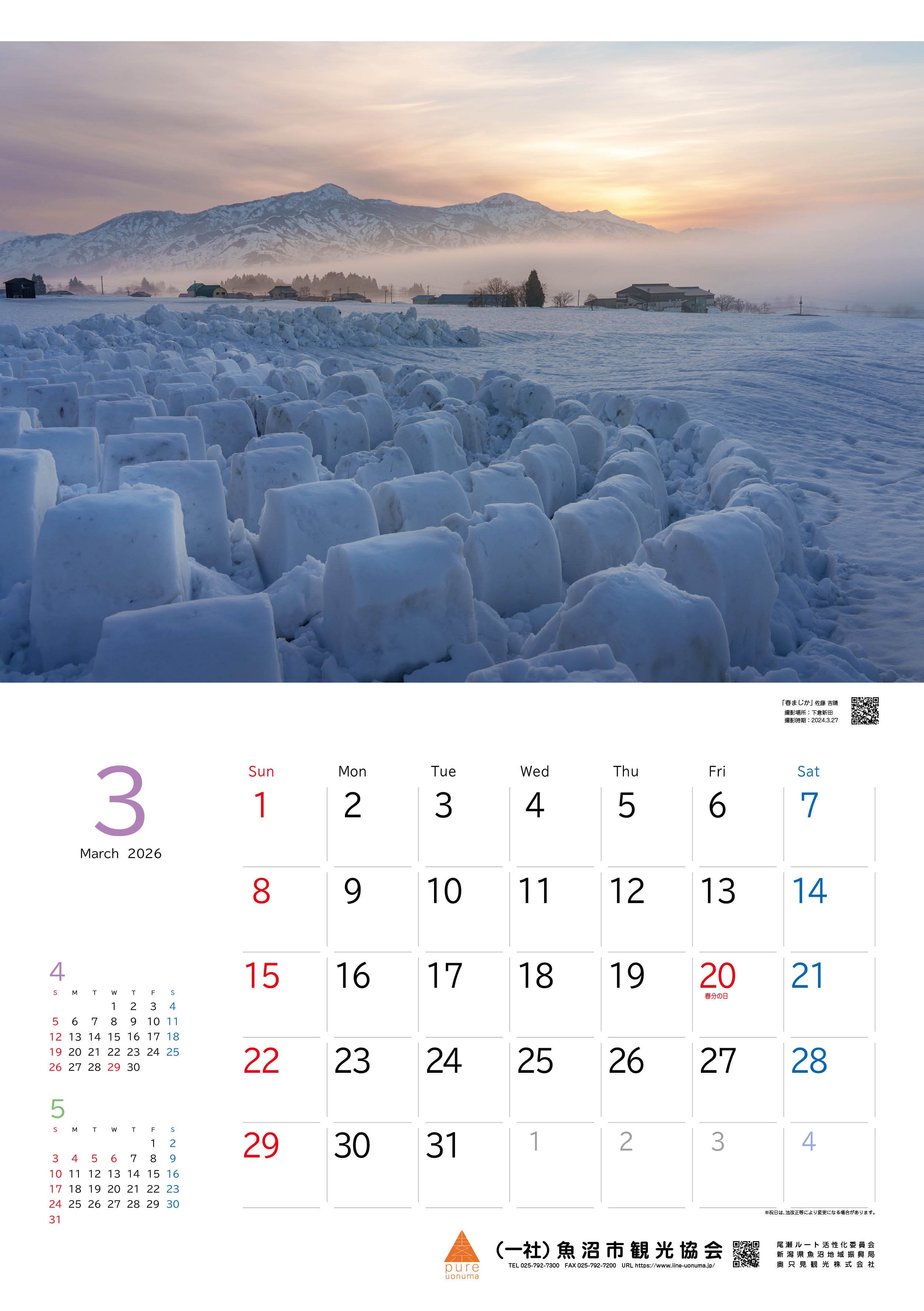 豊かな自然に恵まれた魚沼市では、「滝雲」や「雪流れ」「雪上桜」など他の地域にはない絶景はもちろん、日常の中でも思わず心動く瞬間があります。そんな瞬間を捉えた第21回魚沼市フォトコンテストの入賞作品31作品の中から、厳選した13作品を使い作成したオリジナルカレンダーが完成しました!各月々でその時期の魚沼の魅力が詰まったカレンダーとなっています。